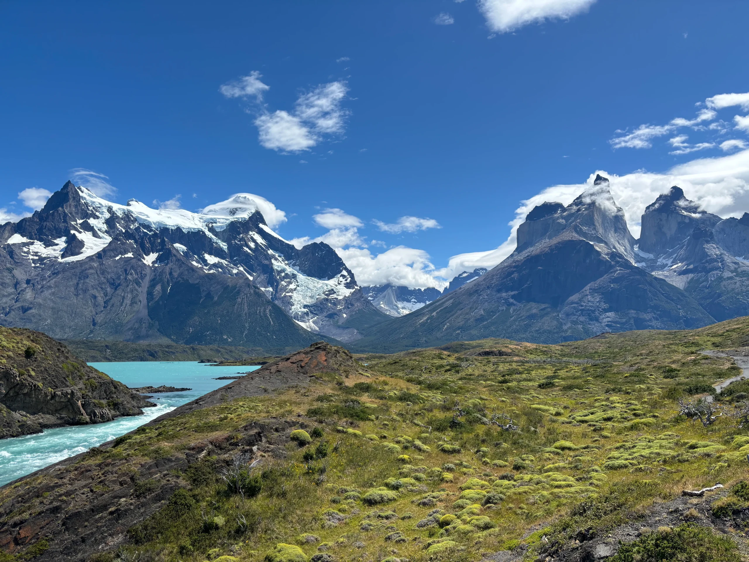Siente el latido del corazón de la Patagonia en una jornada épica. Primera parada la vista del Lago Sarmiento a las Torres del Paine, luego visitaremos la Cascada Paine y seguiremos con la imponente presencia de los Cuernos del Paine reflejándose en el Lago Nordenskjöld. Nuestra cuarta parada será recorriendo la fuerza vital del Salto Grande, donde podremos realizar unas pequeñas caminatas opcionales y ver una de las mejores vistas del parque. Pasado mediodía visitamos los miradores del Lago Pehoe y terminamos nuestro tour en la playa del Lago Grey, donde podemos disfrutar de un rico almuerzo. Este no es solo un tour, es una inmersión profunda en la esencia de Torres del Paine.