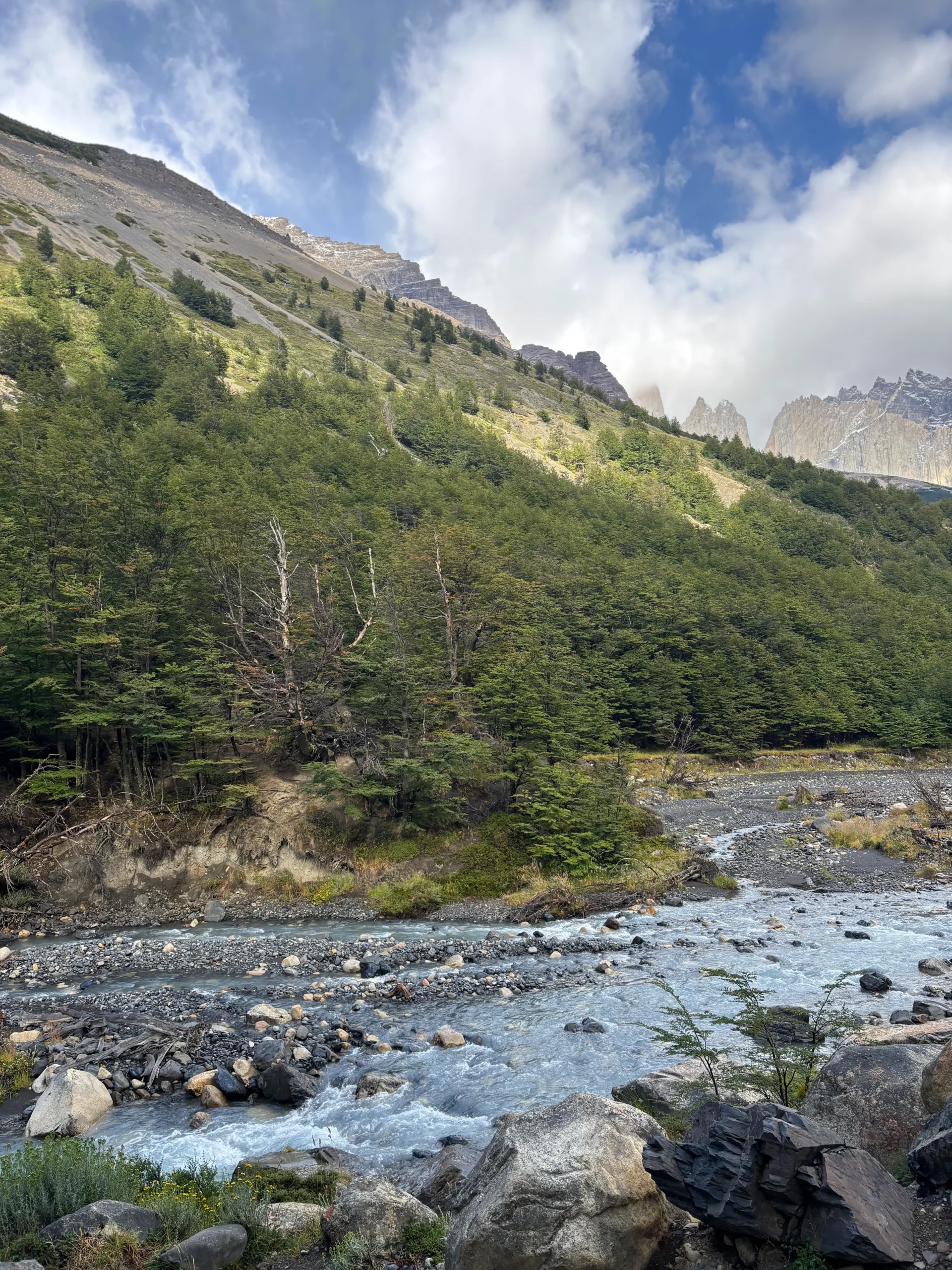Comienza tu caminata por hermosos senderos a través de bosques nativos, ríos y laderas escarpadas hasta alcanzar el Mirador Base Torres. Allí, las agujas de granito se alzan majestuosas en el cielo azul sobre su laguna. Un espectáculo que te dejará sin aliento y con la certeza de haber conquistado un sueño.